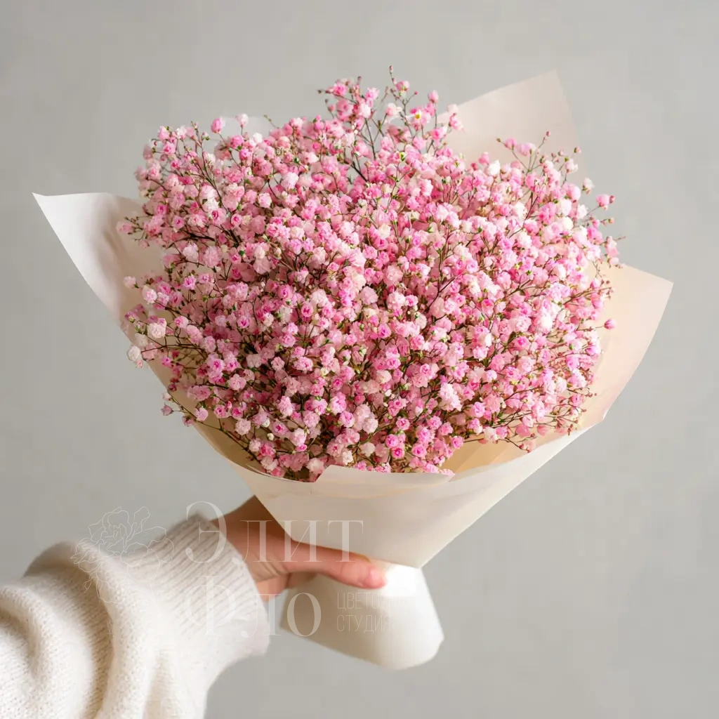 ГлавнаяКаталогБукетыМонобукет из гипсофилы «Ажурный комплимент»