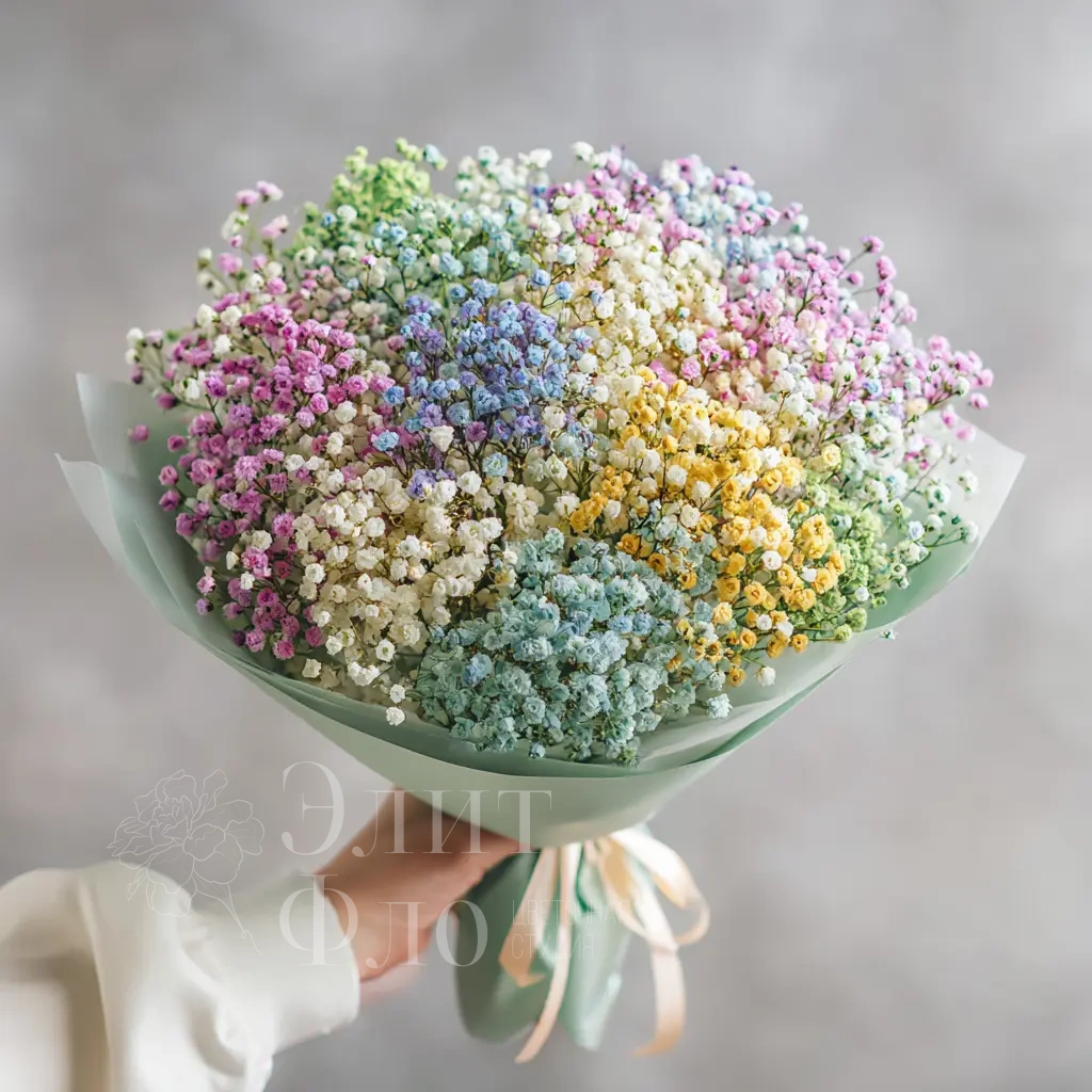 Элегантный букет для тех, кто предпочитает выразительные, но ненавязчивые решения. Гипсофила подчёркивает утончённость композиции и универсальность подачи.