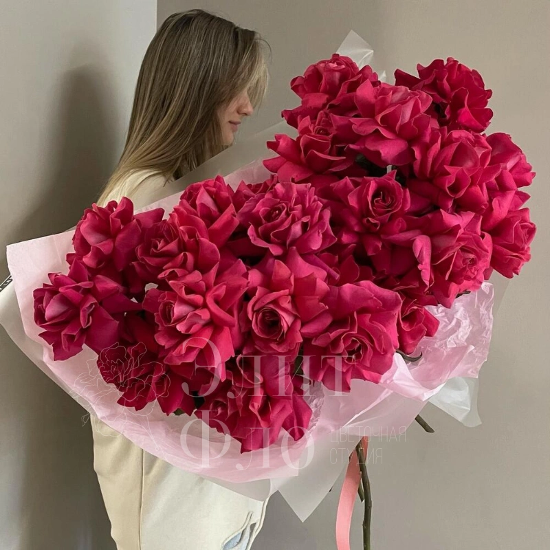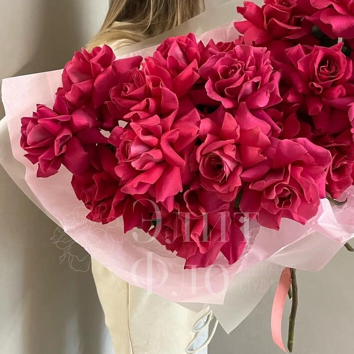 Букет из 25 французких роз нежнейшего малинового оттенка словно воплощение изысканности и утонченности. Нежные лепестки пленяют своим мягким сиянием, создавая атмосферу романтики и восхищения. Этот букет станет идеальным подарком для выражения глубоких чувств, признания в любви или подчеркивания особого статуса события. Его элегантность и благородство цветов придают особую значимость любому моменту, делая его незабываемым и полным эмоций.