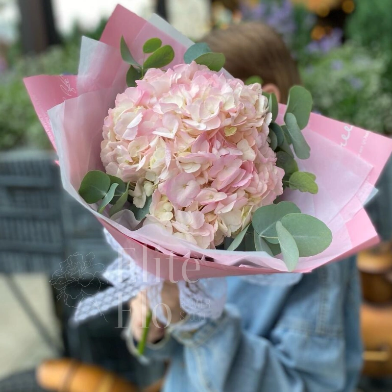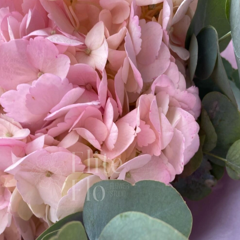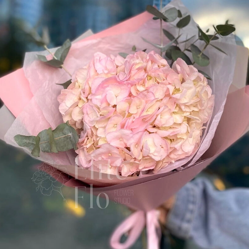 ГлавнаяКаталогБукетыРозовая Гортензия с эвкалиптом