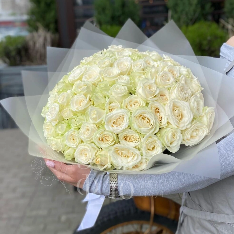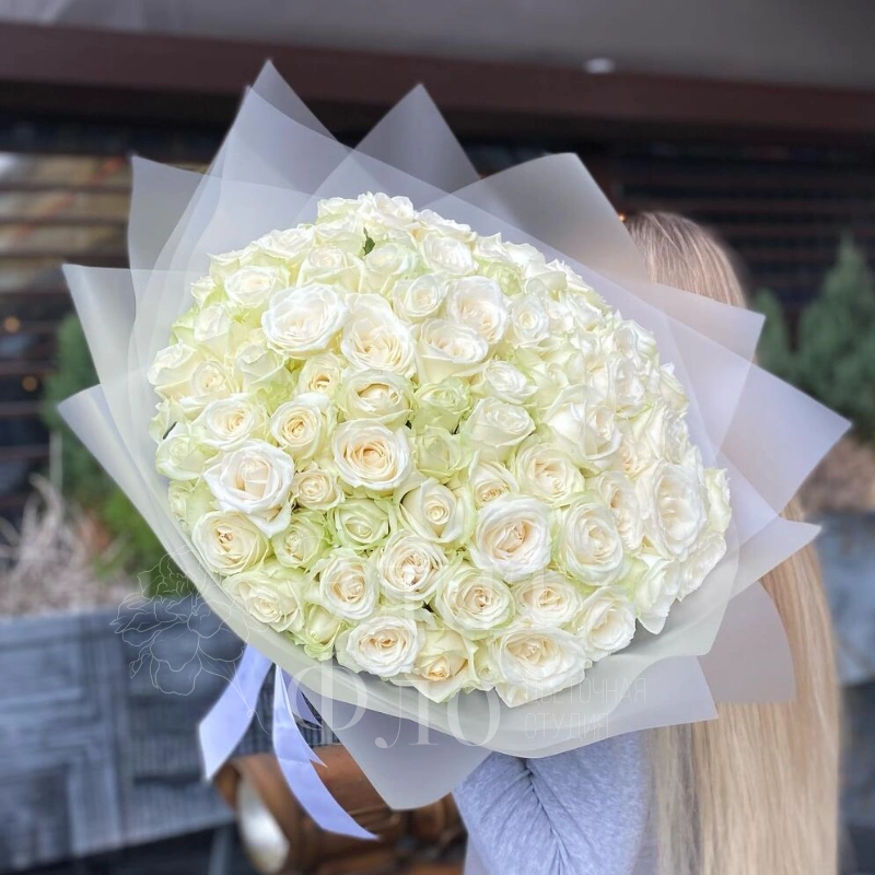 Белые розы «Снежная акварель»