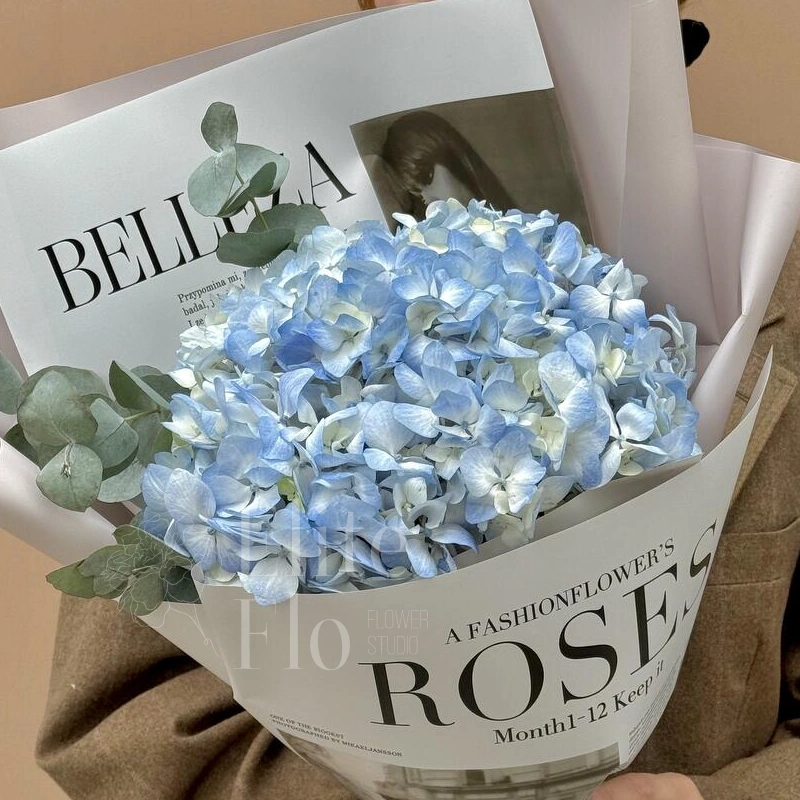 ГлавнаяКаталогБукетыГолубая Гортензия с эвкалиптом