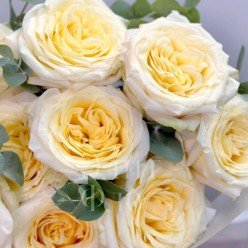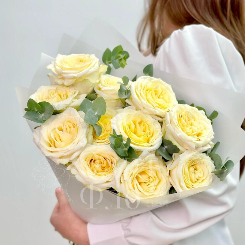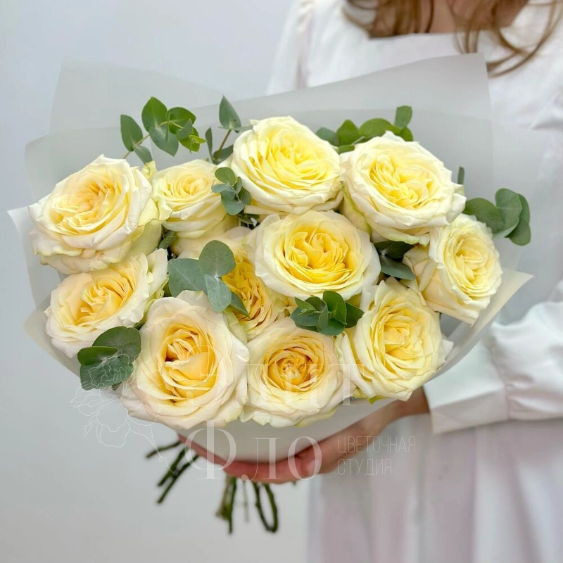 Букет из 11 белых роз и эвкалипта