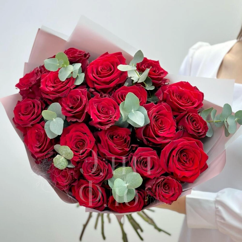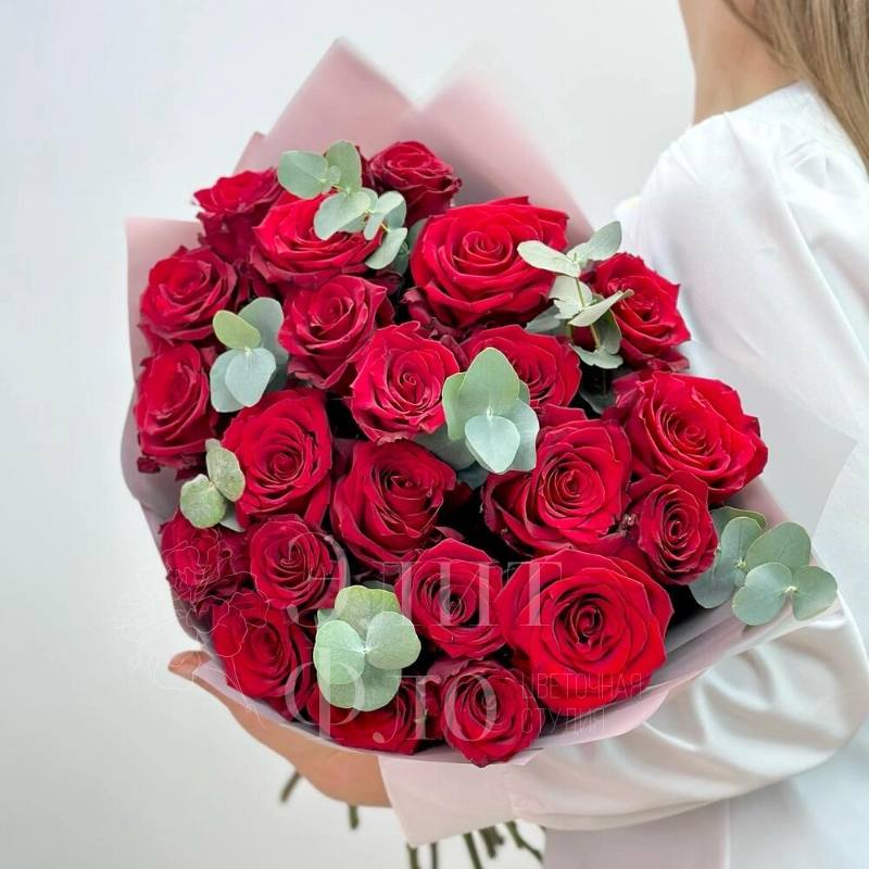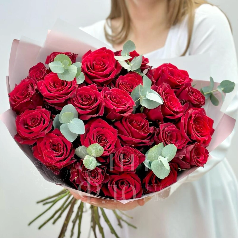ГлавнаяКаталогРозыБукет из 23 бордовых роз