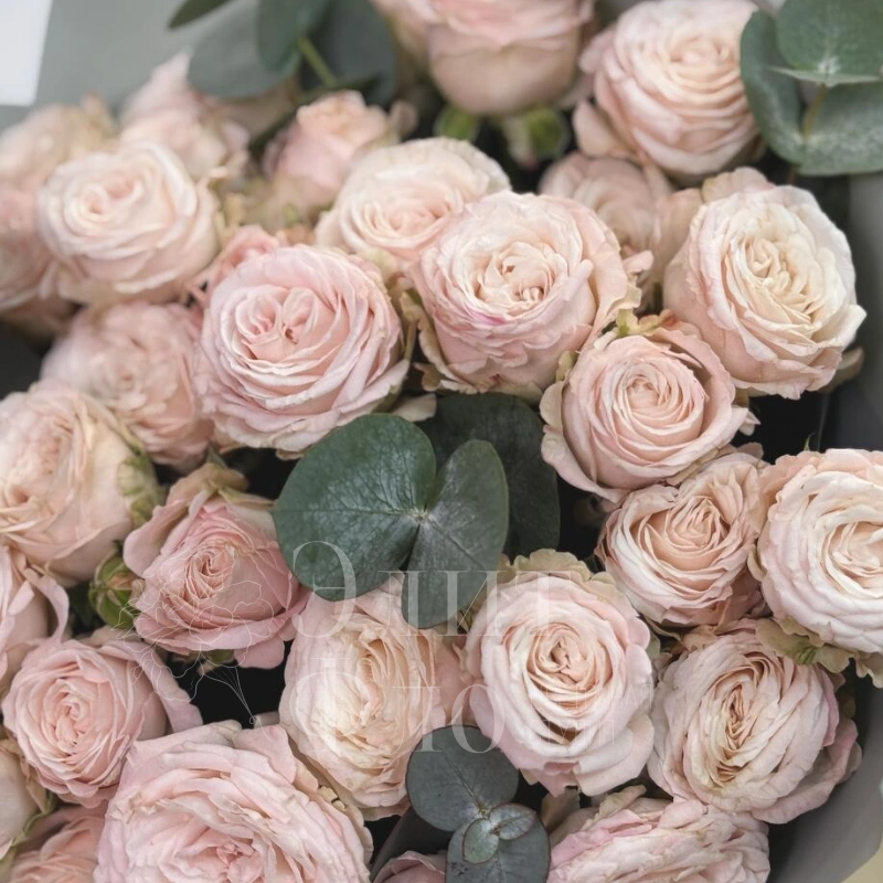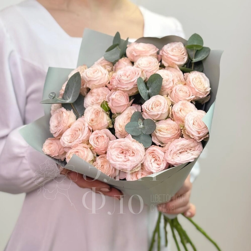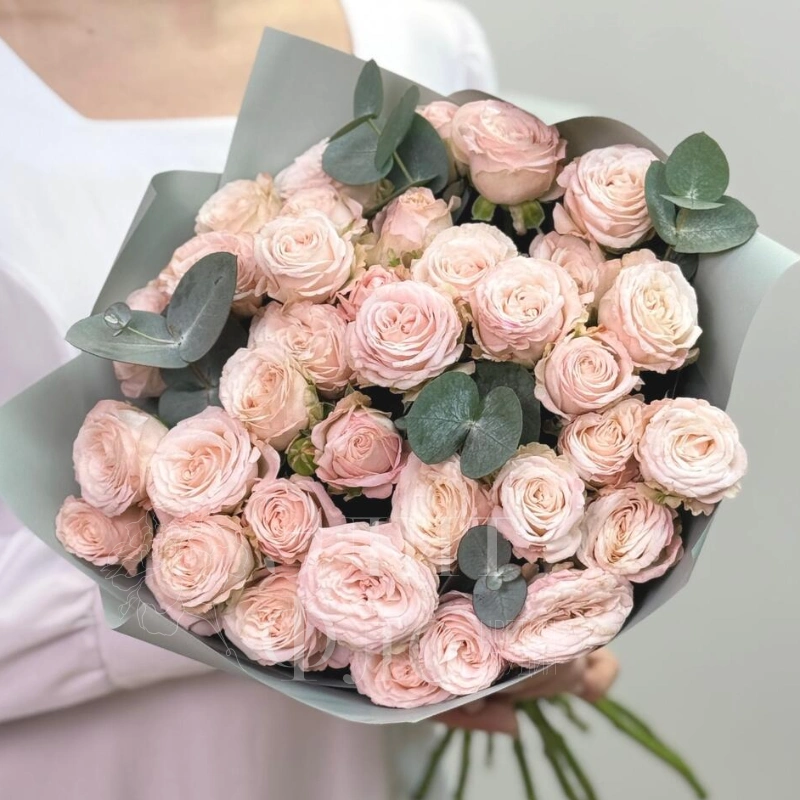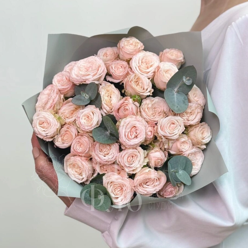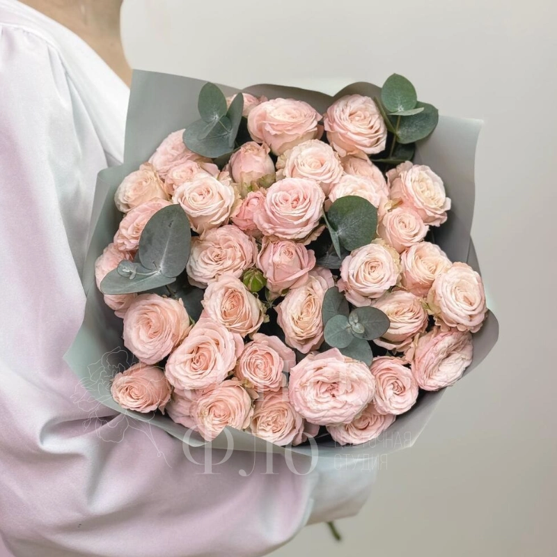 Французские розы с ароматным эвкалиптом, стильное оформление