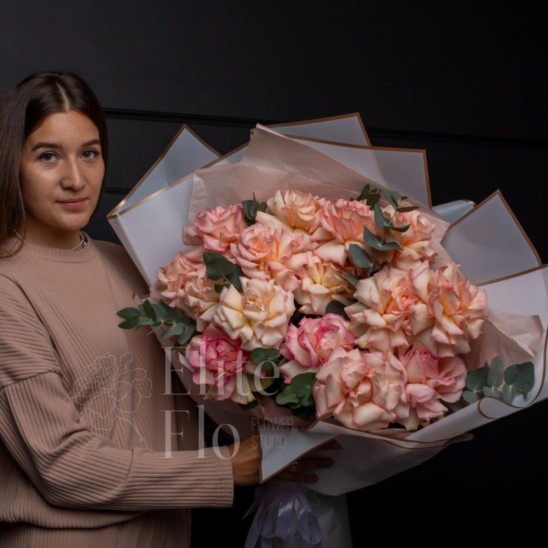 Французские розы с ароматным эвкалиптом, стильное оформление