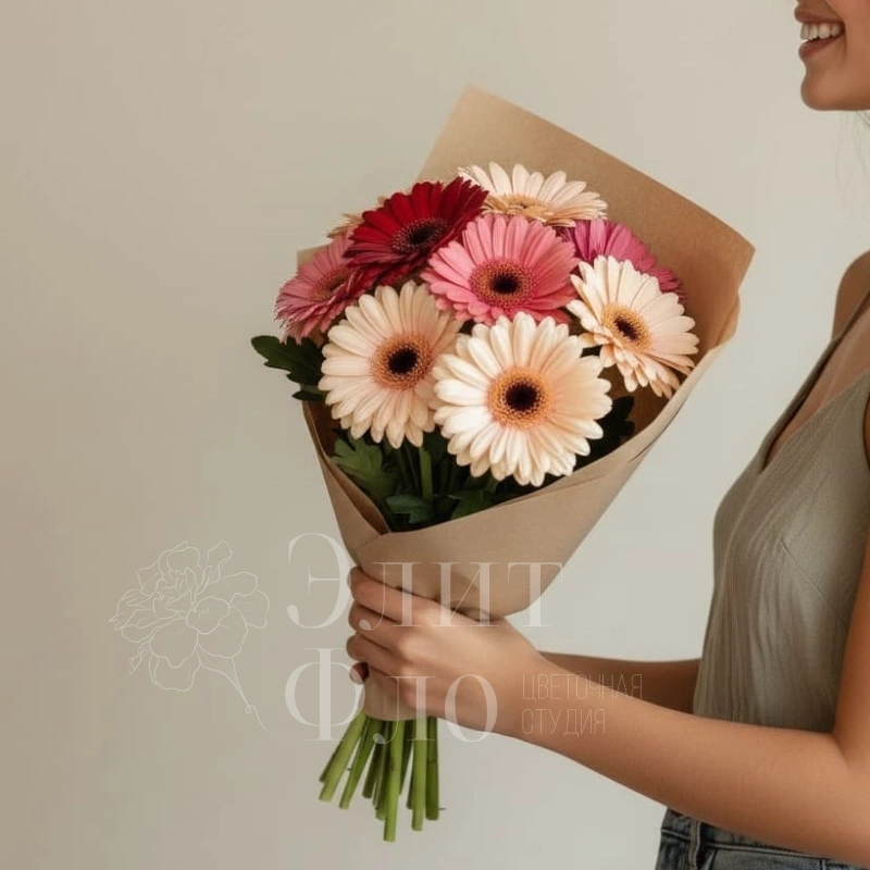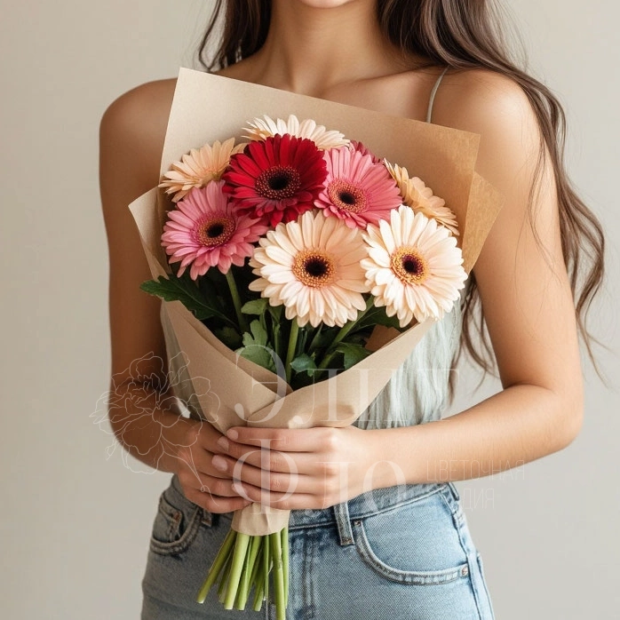 Этот яркий букет из 9 гербер обязательно добавит свежести и радости любому дню. Его насыщенные цвета и изящная форма создадут праздничное настроение и подчеркнут особенность любого события. Идеальный выбор для подарка или украшения вашего интерьера.