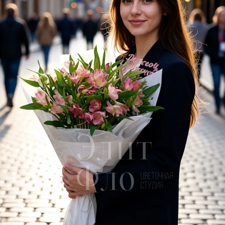 Букет из нежных розовых альстромерий, элегантно оформленный в белую упаковку, станет идеальным подарком для тех, кто ценит красоту и изящество. Нежные цветки и яркая зелень создают ощущение легкости и свежести, наполняя пространство теплом и уютом. Этот букет прекрасно подойдет для выражения признательности и нежных чувств.