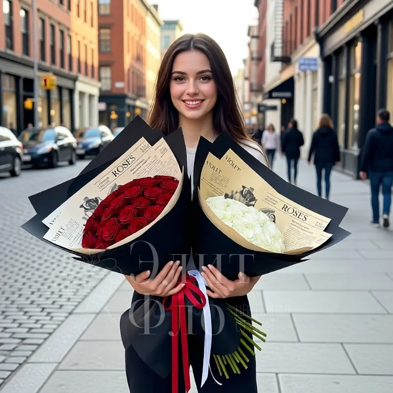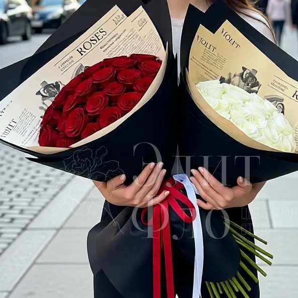 Контрастный букет из 15 ароматных роз