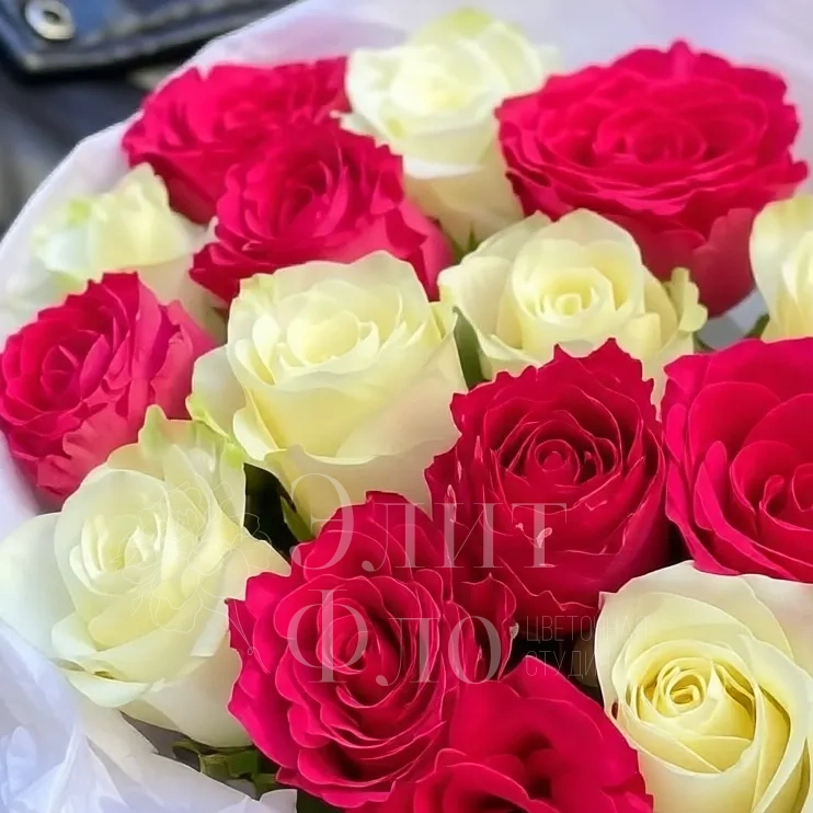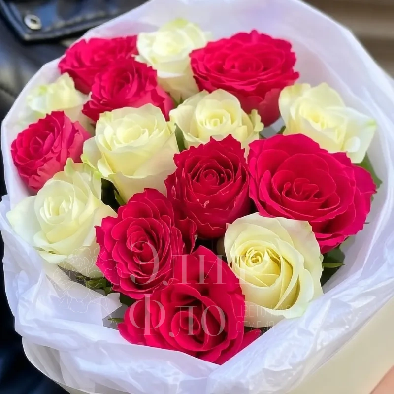 Контрастный букет из 15 ароматных роз