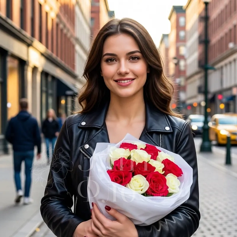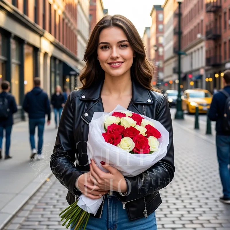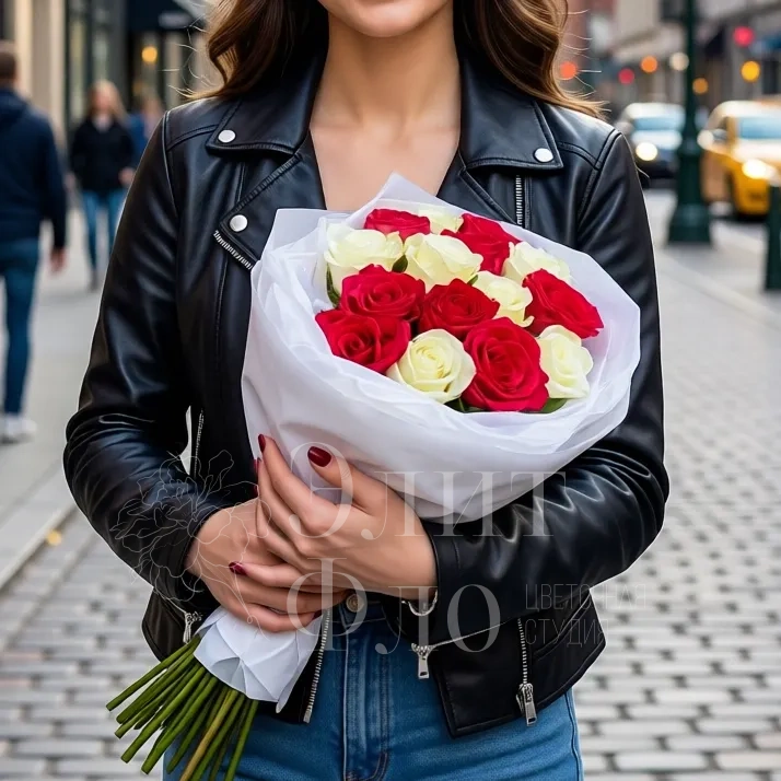 Свежие, упругие бутоны роз создают ощущение роскоши и тепла. Такой букет станет идеальным подарком для особого случая — он поразит своей красотой и выразительностью. Лёгкая игра контрастов между красными и белыми розами придаёт композиции особую изюминку.