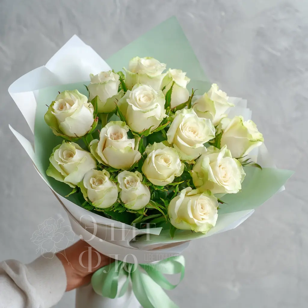 Сдержанный и лаконичный букет из 15 белых роз отечественного производства — выбор для тех, кто ценит натуральность и простоту. Подойдёт как для деловых случаев, так и для поздравлений близких.