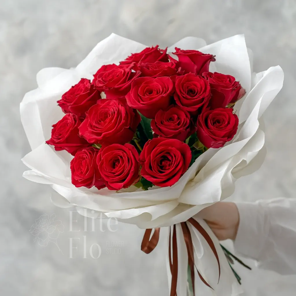 Классический букет из 15 красных российских роз с длинными стеблями — выразительный и эффектный способ признаться в любви. Отличный выбор для торжественных случаев и романтических жестов.