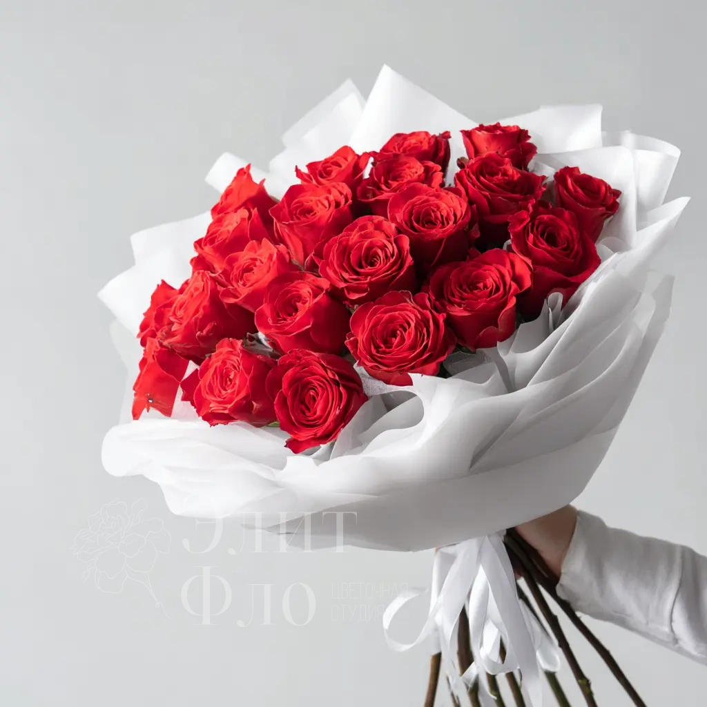 Этот букет буквально дышит страстью. Красные розы словно языки пламени символизируют влюблённость, пыл и энергию чувств. Универсальный выбор для Дня святого Валентина или годовщины.